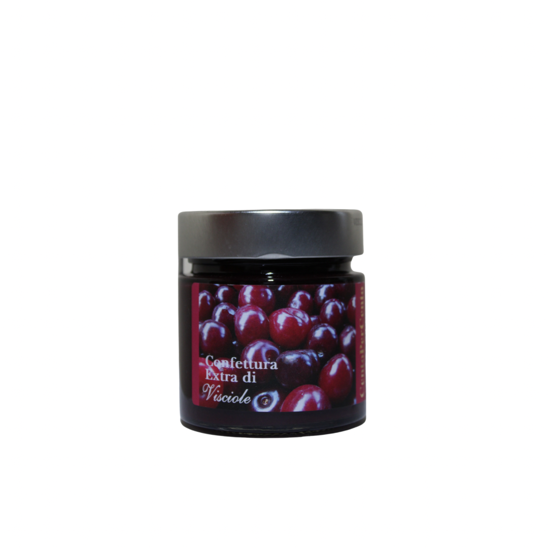 Confettura extra di visciole con 100% di frutta e aggiunta di zucchero.